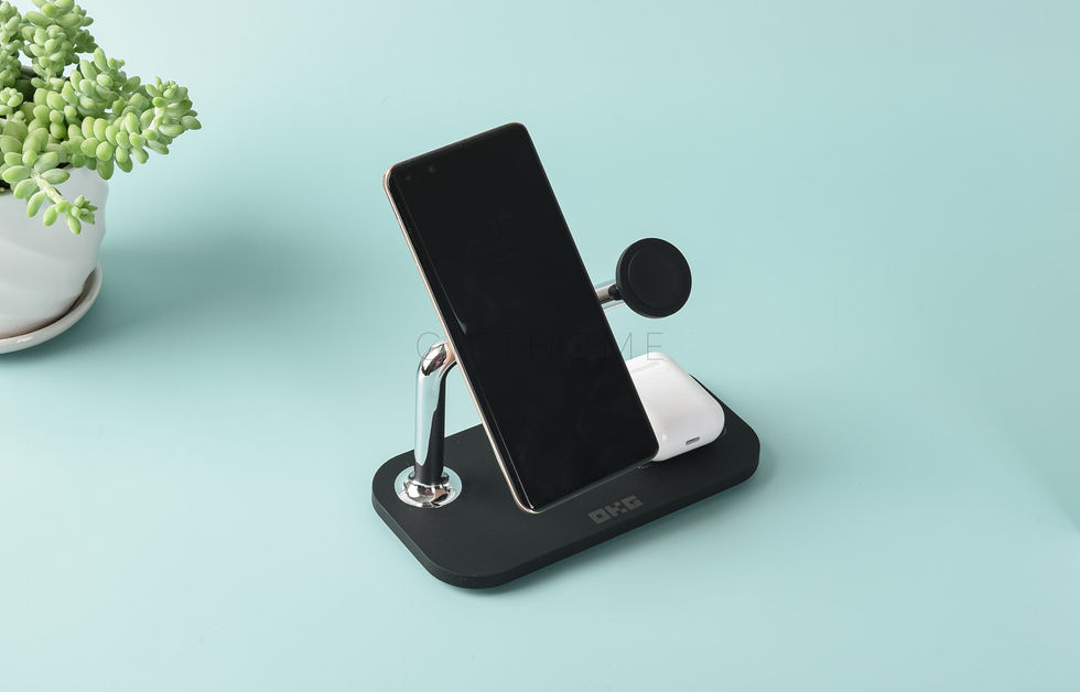 特色:可同時充手機、智能手錶及Airpods,一貼即充材料:ABS外殼尺寸:17.5 x 9 x 11.6cm接口:Type-C認證:CE, FCC, RoHS印刷:鐳射 Logo
